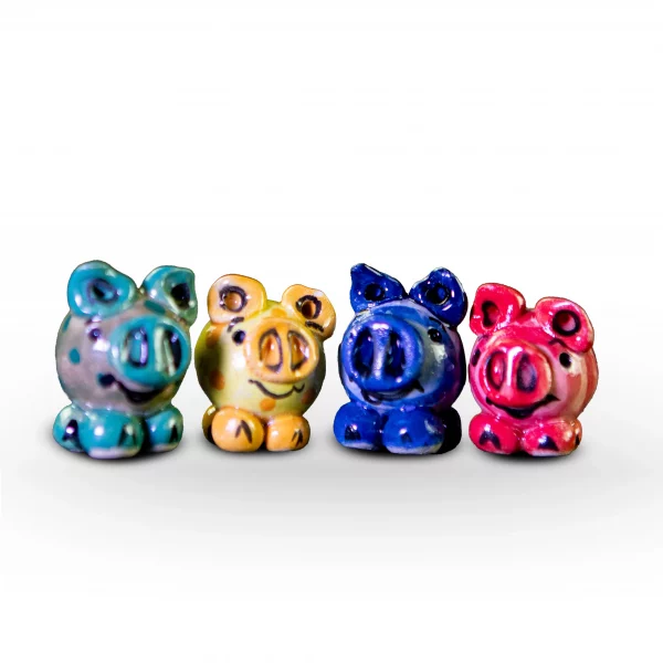 Kugelrund und rundum zufrieden, lächeln einen diese witzigen Glücksschweinchen an. Mit fleißigen Händen wurde jedes Einzelne gerollt, gedrückt und bemalt. Das Gesichtchen fällt bei jedem anders aus und lässt somit das „Glück“ immer ein bisschen anders erscheinen.